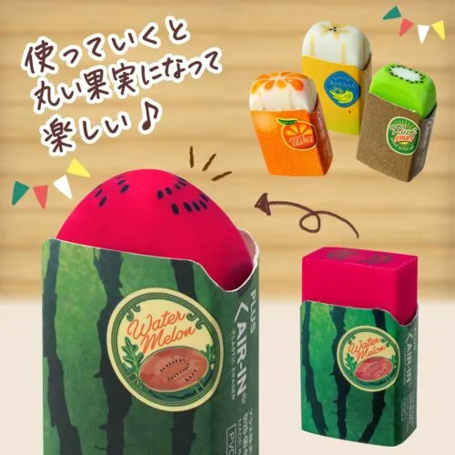 Au fur et à mesure que vous utilisez la gomme, celle-ci ressemblera de plus en plus au fruit en question !