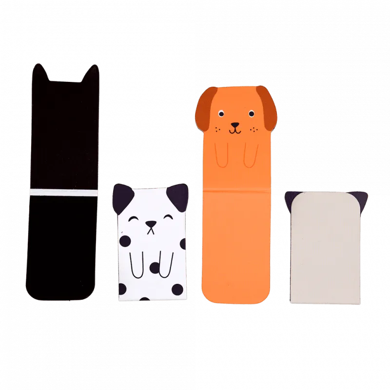 Ces marque-pages magnétiques mettent en vedette quatre adorables motifs de chiens inspirés du style kawaii.