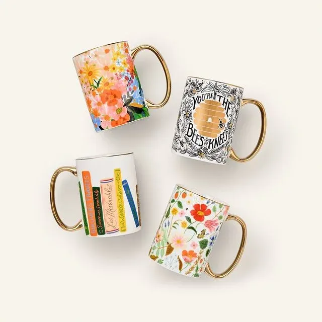 Installez-vous confortablement avec ce ravissant mug Rifle Paper remplie de votre boisson chaude préférée.