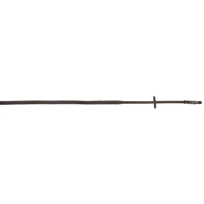 Rênes spéciales Thiedemann. Rênes sangle en cuir particulièrement robuste avec trois anneaux D cousus. S’adaptant à la martingale 119001. Très belle finition et qualité du cuir.